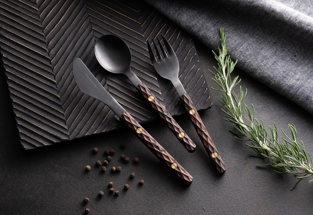 下記3商品のセット販売となります。 ■機内食カトラリー スプーン ■機内食カトラリー フォーク ■機内食カトラリー ナイフ 新潟県三条の老舗・佐藤金属工業(SALUS)さんが手がける機内食カトラリー。「機内でも危なくないように」と考えられた小ぶりでシンプルなデザイン。 もともと20年以上前、航空会社で採用されたデザインをモデルに生まれたシリーズで、今ではホテルやカフェでも愛され続けています。 ■機内食カトラリー スプーン 【製品仕様】 全長 :約 155㎜ 重量 :約30g 素材 :金属部/BKステンレス(黒酸化発色) 柄/積層強化木 ネジ/真鍮 ■機内食カトラリー フォーク 【製品仕様】 全長 :約 155㎜ 重量 :約30g 素材 :金属部/BKステンレス(黒酸化発色) 柄/積層強化木 ネジ/真鍮 ■機内食カトラリー ナイフ 【製品仕様】 全長 :約 175㎜ 重量 :約40g 素材 :金属部/BKステンレス(黒酸化発色) 柄/積層強化木