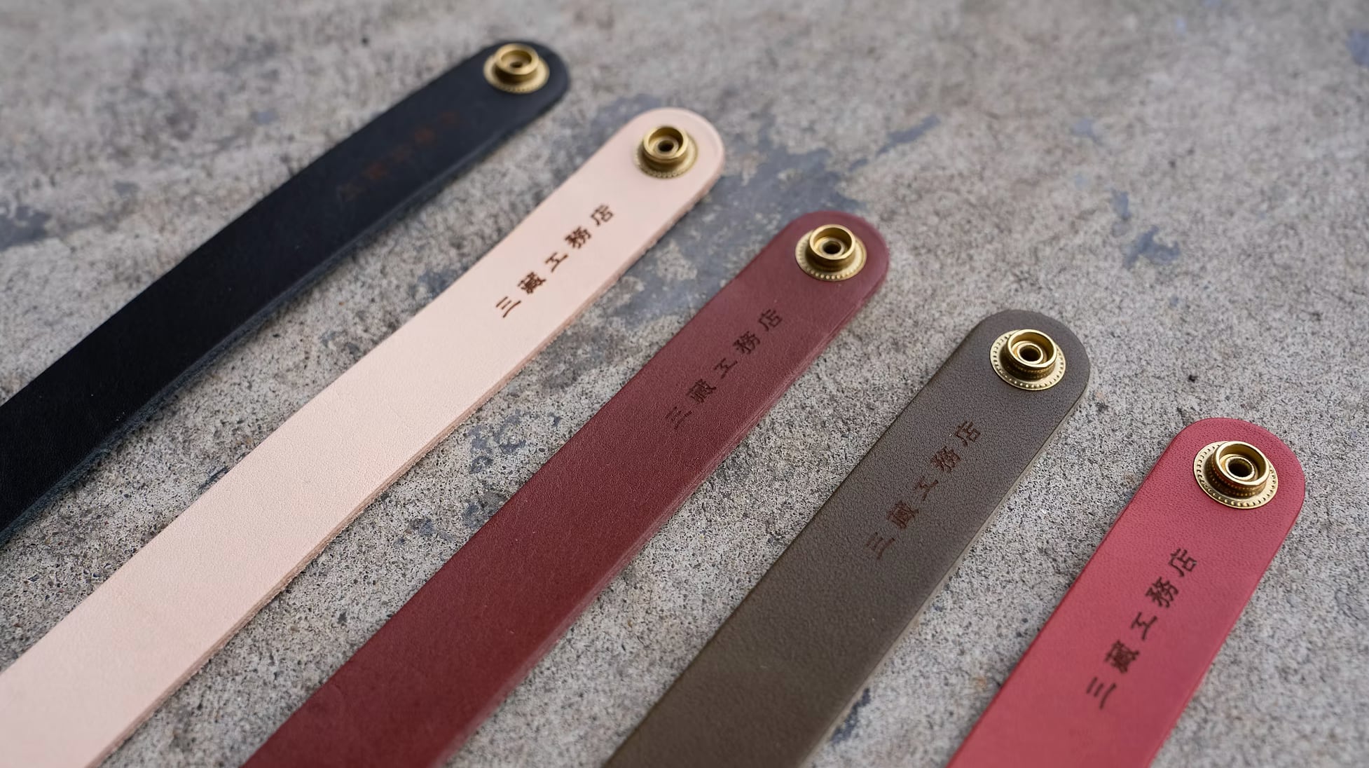 真鍮のリベットとブランド刻印がアクセントとなり、さりげなくも存在感のある一本。